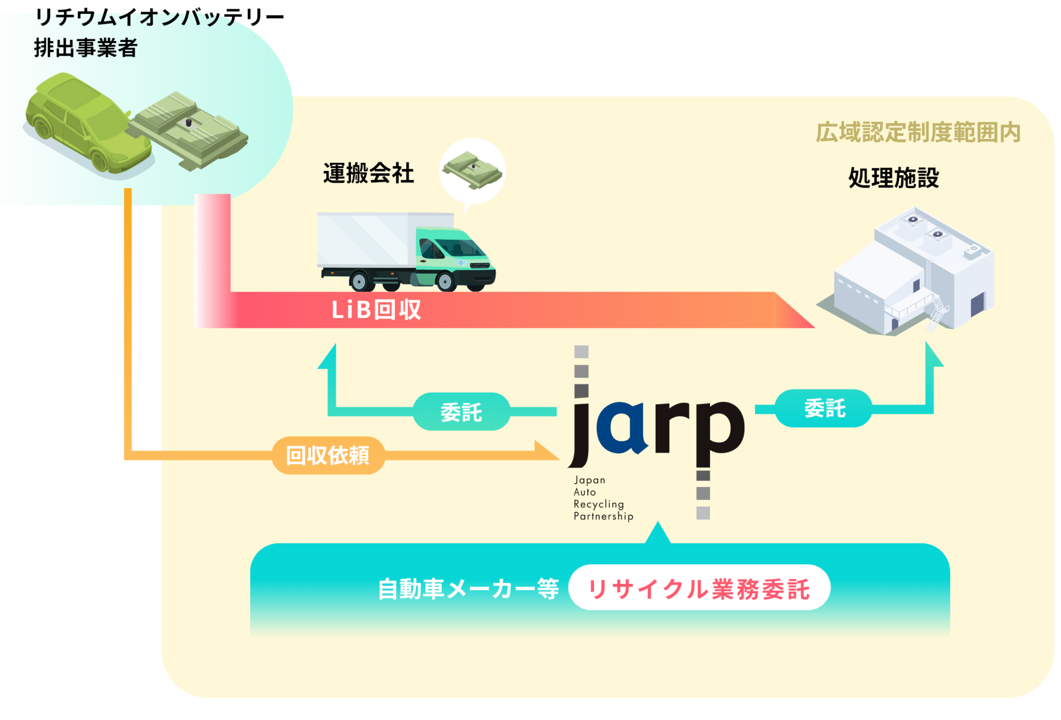 排出事業者は以下の手順でリチウムイオンバッテリー(以下、LiB)を引き渡します。